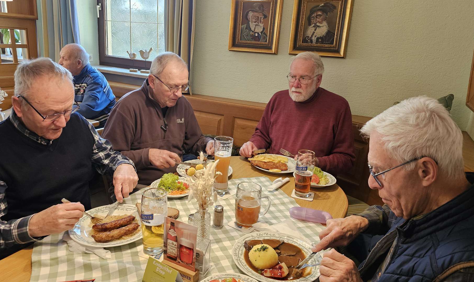 einen kleinen Umweg zum "Königsee". Dort sind wir wieder sehr zufrieden, tatsächlich kommen Gourmets und Gourmands auf ihre Kosten, und das Weismainer alkoholfreie Zwickel (naturtrüb) kommt auch beim Pit gut an - außerdem schaut man einem geschenkten Gaul nicht ins Maul - es lebe der Manfred!