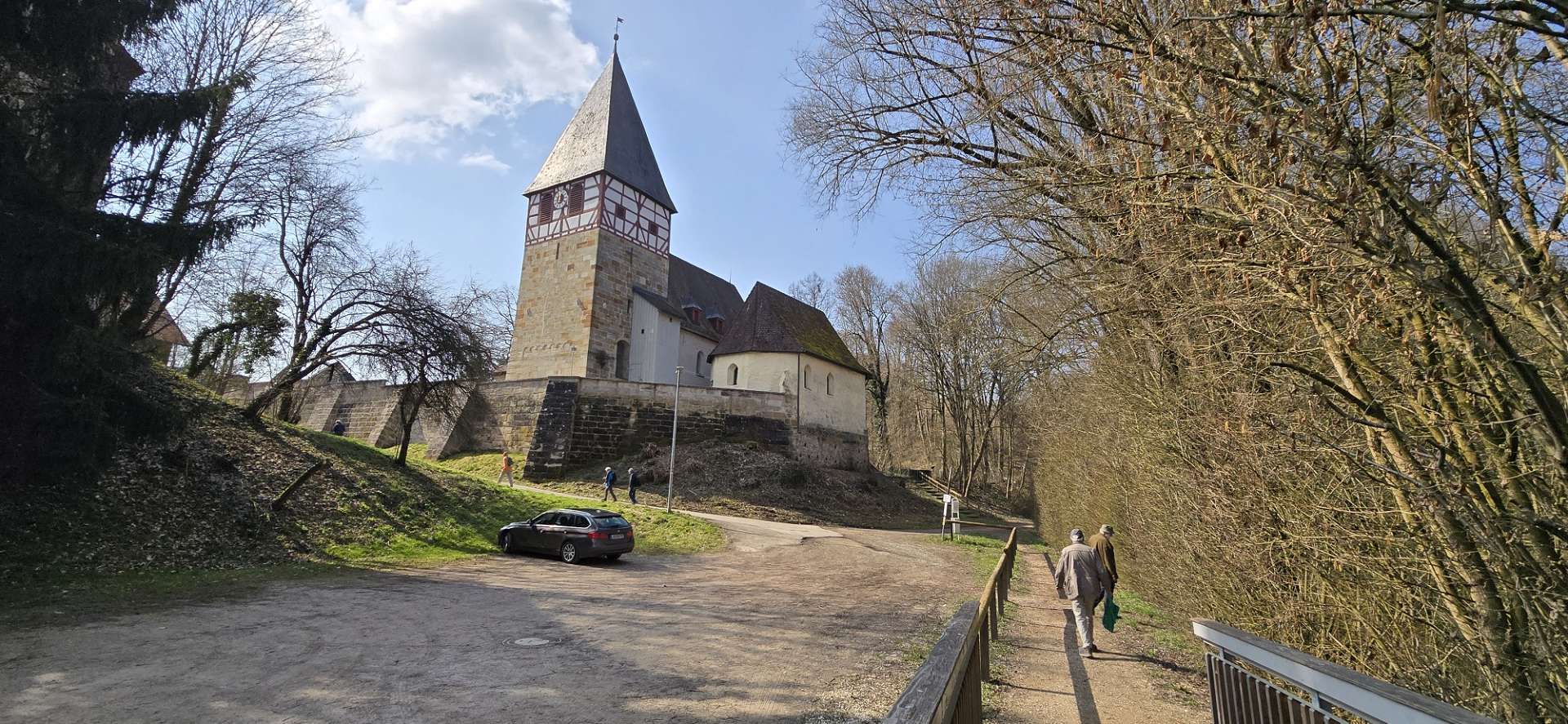Durch die Löwengrube über die Himmelsleiter ins Tal der Schwarzach zum Kirchlein St. Michael Obwohl wir nun schon so lange miteinander wandern, waren mehr als die Hälfte noch nie an der Löwengrube und in Rasch. Das musste sich natürlich ändern, denn nicht nur der abenteuerliche Weg um die Löwengrube über die Himmelsleiter und entlang der Schwarzach macht Spaß, auch das Kirchlein in Rasch ist sehenswert. Und auch Altdorf selbst ist natürlich interessant als Ausgangs- und Zielort: Dort sind es nicht nur die evangelische Kirche mit ihrem außergewöhnlichen Inneren und die Marktstraßen mit den alten Toren, Brunnen und Häusern, ... in Altdorf gibt es immer noch mindestens 7 Gasthäuser, die Mittwoch Mittag geöffnet haben und gleich mehrere Eiscafés 😉. Gefahren sind wir öffentlich und die Innenstädtler waren in 1 1/4 Std dort, die Rückfahrt war nach ca. 1 Stunde erledigt, mit 1x Umsteigen - so ähnlich auch die ERHler ... aber leider nicht die Frauenauracher. Wie so oft müssen die eine dreiviertel Stunde früher aufstehen, weil die Busanbindung schlechter kaum sein kann. Die Frequenz ist miserabel, der 201er fährt zur gleichen Zeit wie der 281er und der hält dann z. B. an der Paul-Gossen-Brücke 1 Minute vor Abfahrt der S-Bahn☻!!! Toll geplant und alles sehr motivierend - aber warum lassen sie sich auch eingemeinden. (Mit der StUB wird es natürlich besser). In Altdorf haben die Navis wieder einmal nicht mit den Satelliten kommunizieren wollen - wahrscheinlich hat Trump vor Kuba noch das Weltall ein bisschen durcheinandergeschüttelt (nicht gerührt). So kamen wir mit ein bisschen hin und her am Ende auf über 9 Kilometer.