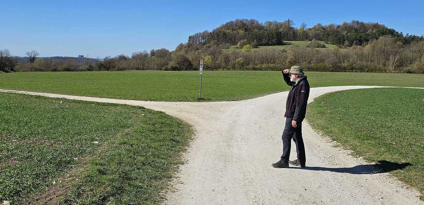 tickt die Uhr. Trotz einiger Risiken: 3 mal kurze Umsteigezeiten, in Nürnberg Streik beim VGN, 2 mal Rufbus und eine Strecke, die (fast) minütlich auf den ÖPNV abgestimmt ist, hat alles geklappt! Trotzdem werden wir beim nächsten mal etwas anders planen (ein Taxi für 8 Personen von Loffeld nach Schwabthal kostet 4,50 p.P). Eine knappe Stunde mehr (also 2:45 bis und 1:15 in Loffeld, d.h. 13:45 ab Loffeld) würde dem Genuss gut tun und noch ein paar zusätzliche Minuten (bis zu einem normalen Bus um 15.09 in Kaider) für den Weinhügel lassen (die Kapelle dort muss man ja nicht jedes mal besuchen). Auch wichtig für die Planung: es gibt unterschiedliche Fahrpläne während und außerhalb der Osterferien. Insgesamt sind es dann, für diejenigen mit Schlenker am Staffelberg und mit Weinhügel, ca. 11 km geworden. Mit dem manchmal etwas steilen und steinig-rutschigen Abstieg vom Staffelberg nach Loffeld (Wanderstöcke empfohlen) und den üppigen Höhenmetern hat es am Ende gereicht und nicht alle haben die schöne Gegend auf der Rückfahrt mit offenen Augen genießen können 🤣. Trotzdem: im nächsten Jahr wieder? Andere Vorschläge, z.B.: ab Lichtenfels (11 km); Staffelstein Runde (6 km), Romansthal-Staffelberg Runde (3 km) |
