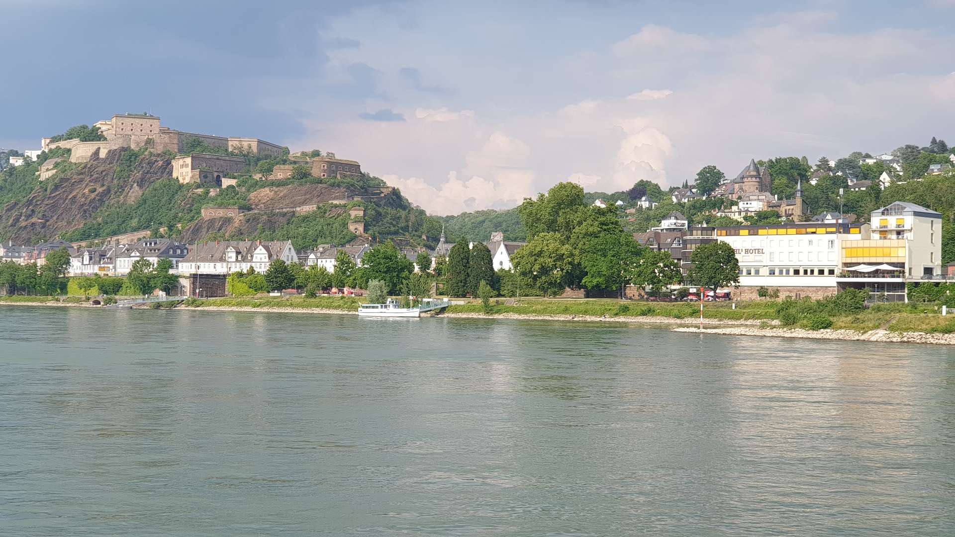 ![]() unten schon Koblenz, im Hintergrund die Festung "Ehrenbreitstein" |