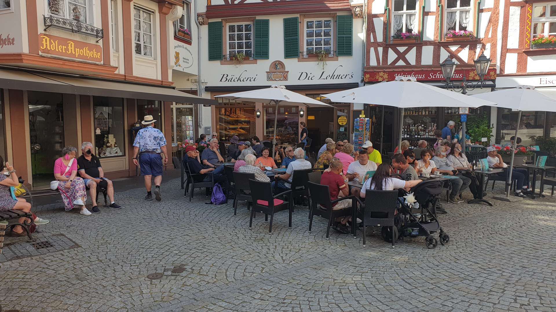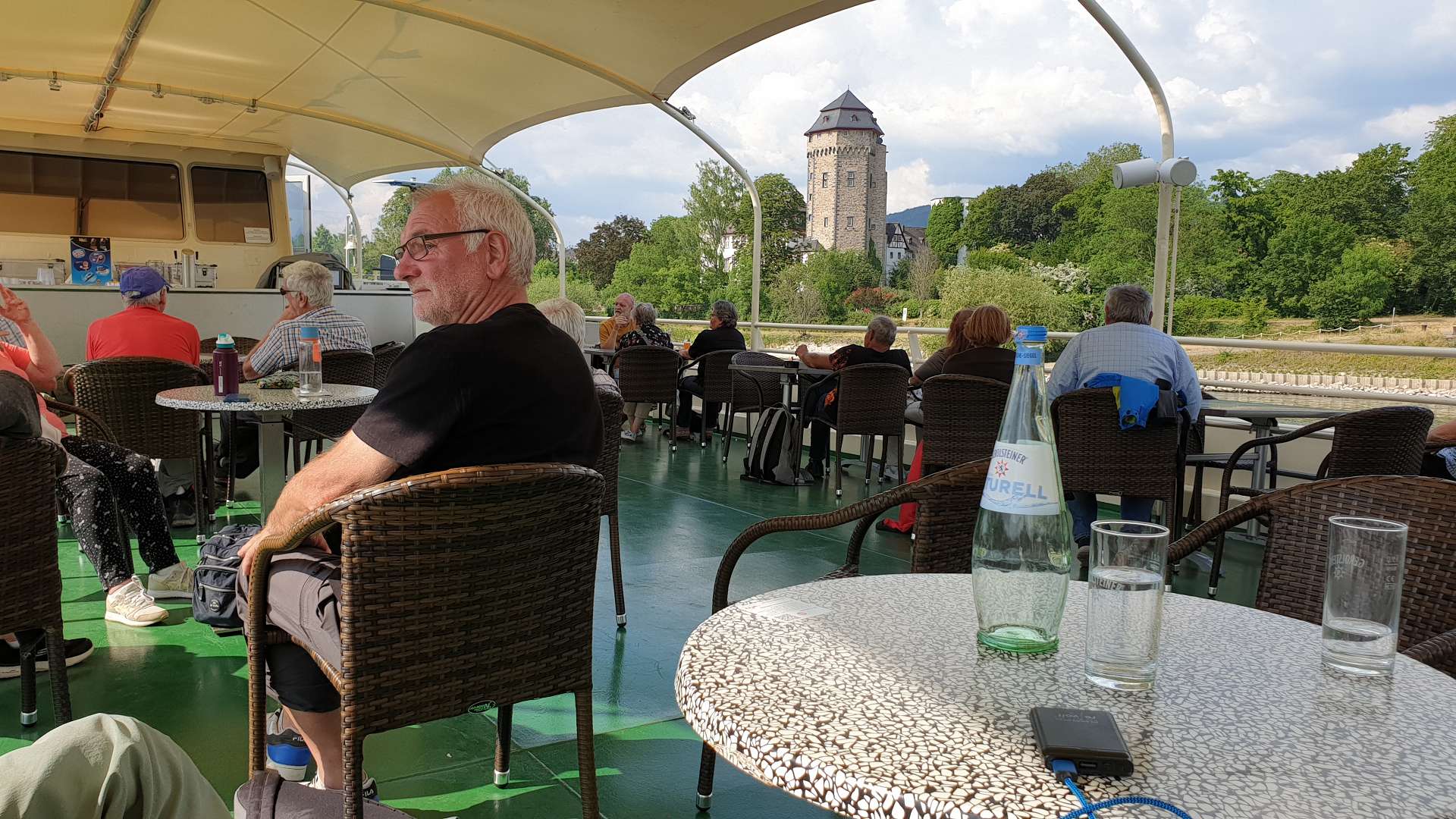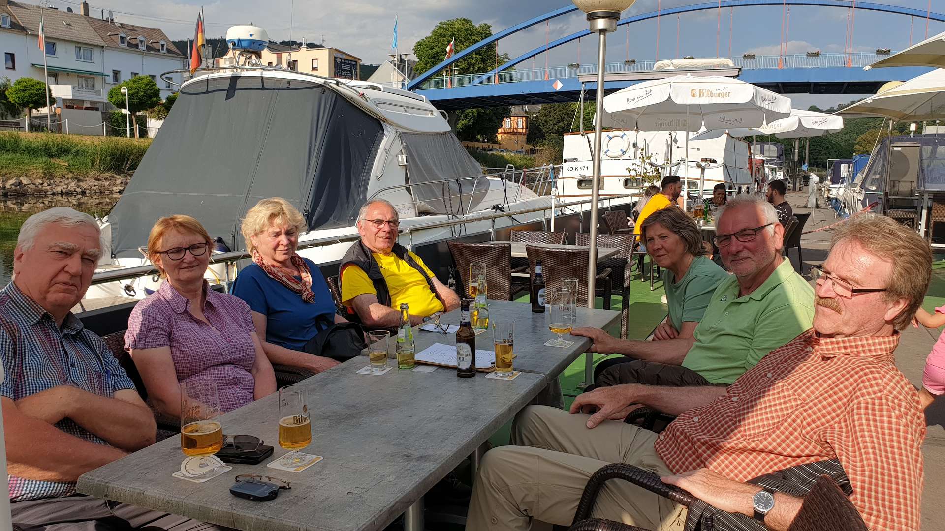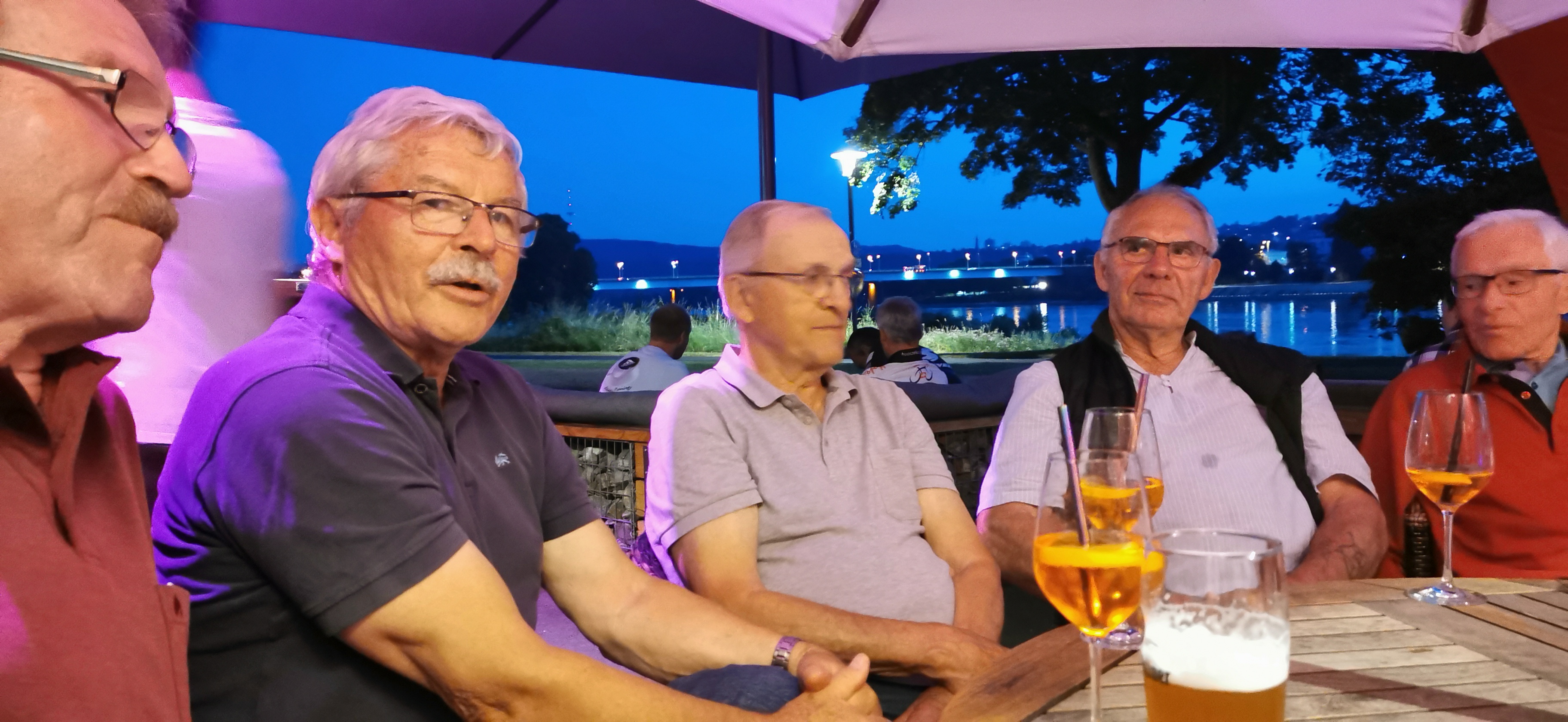 ![]() unten: auf dem Rückweg nach Koblenz in Lahnstein: Abendessen mit Blick auf das Wirtshaus an der Lahn |