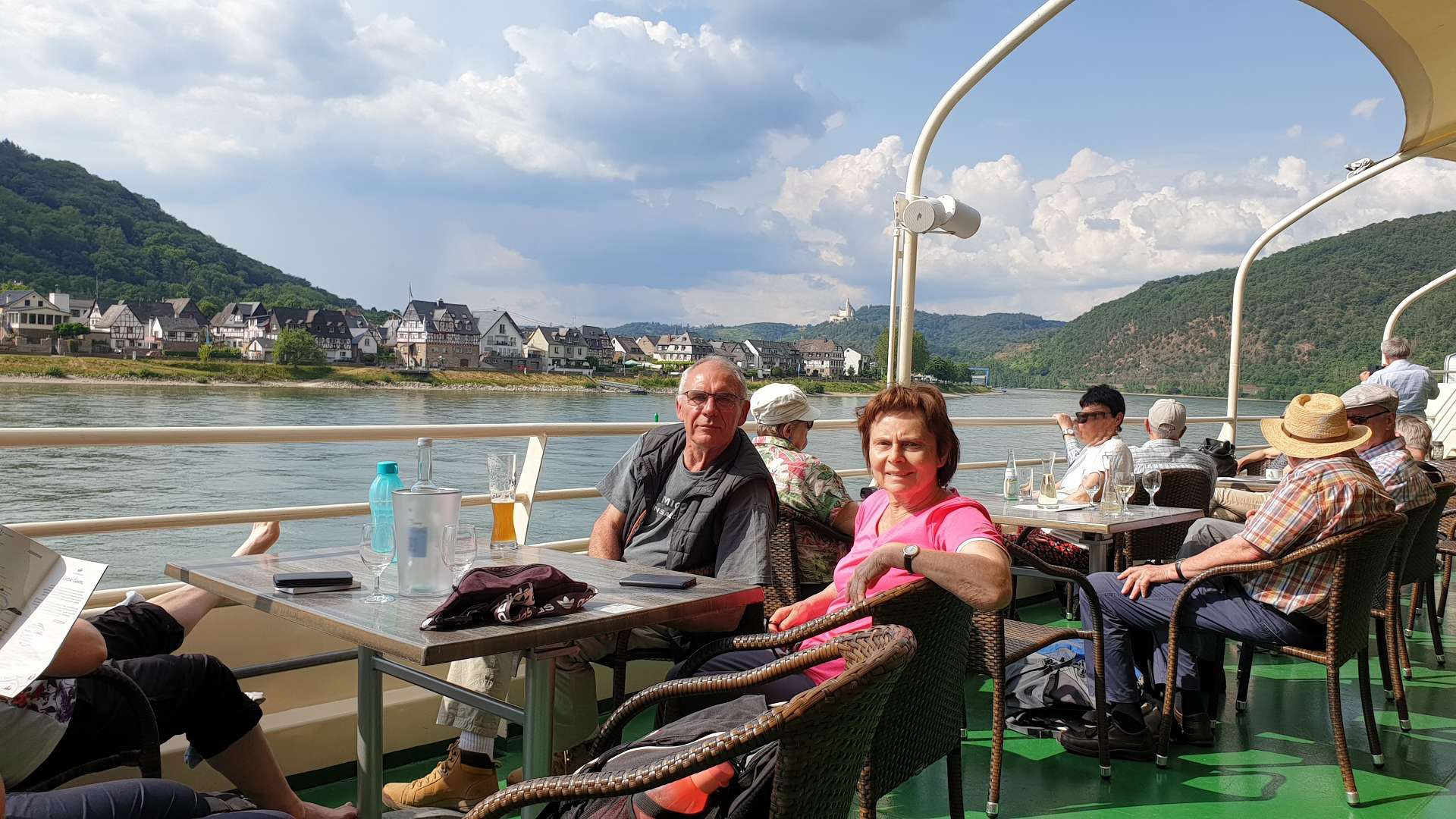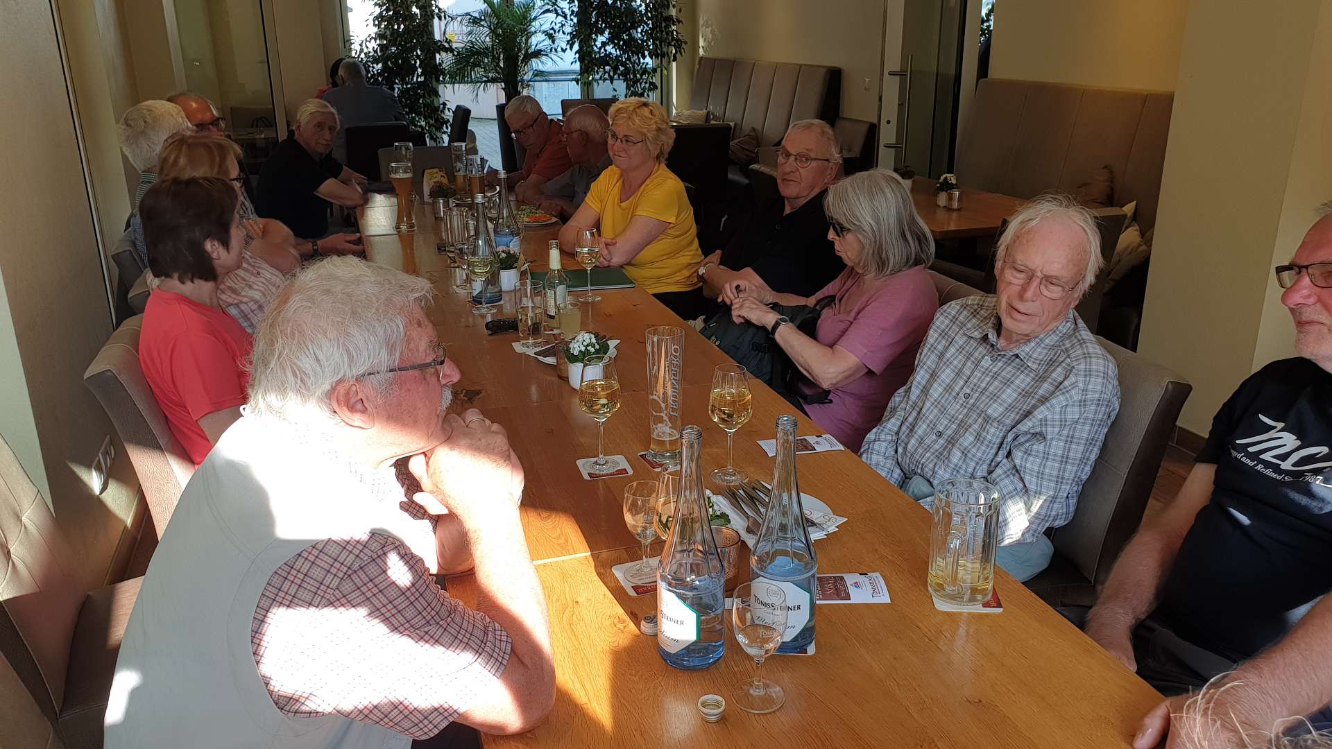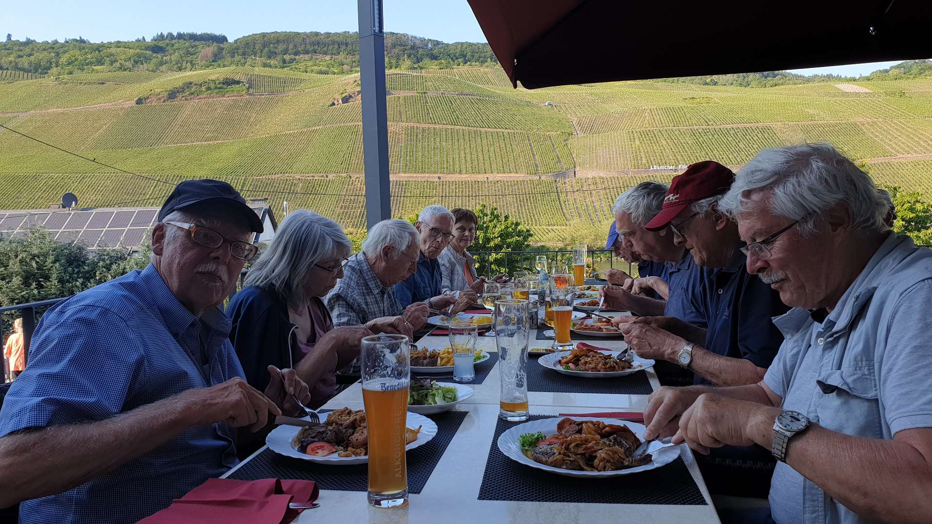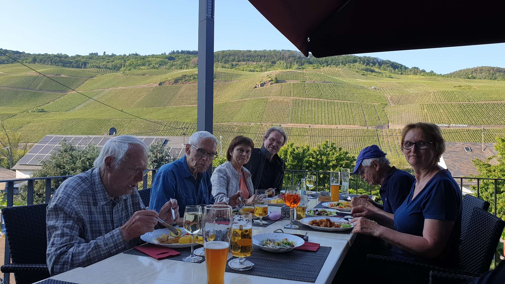 ![]() unten: auf dem Rückweg nach Koblenz in Lahnstein: Abendessen mit Blick auf das Wirtshaus an der Lahn |
