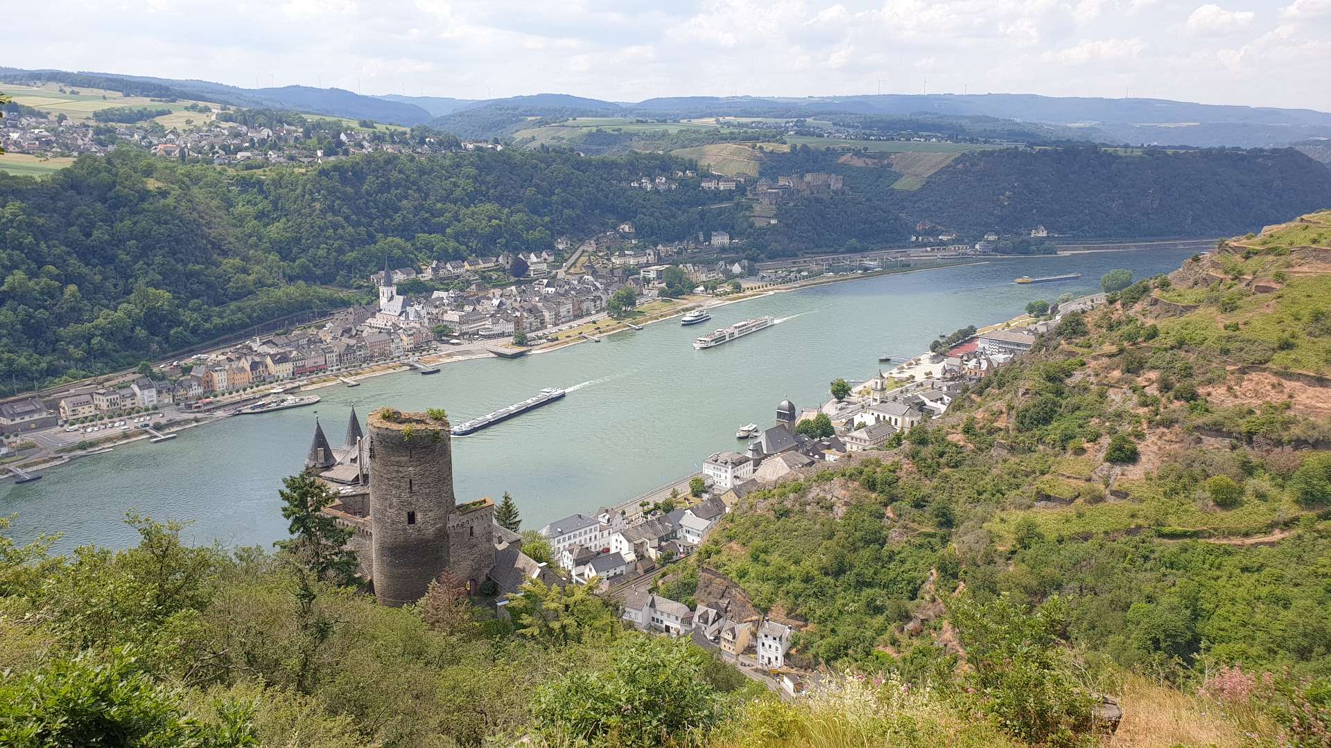 | Burg "Katz" - St. Goarshausen / unten im Hintergrund, Bildmitte über St. Goar: Burg "Rheinfels" |