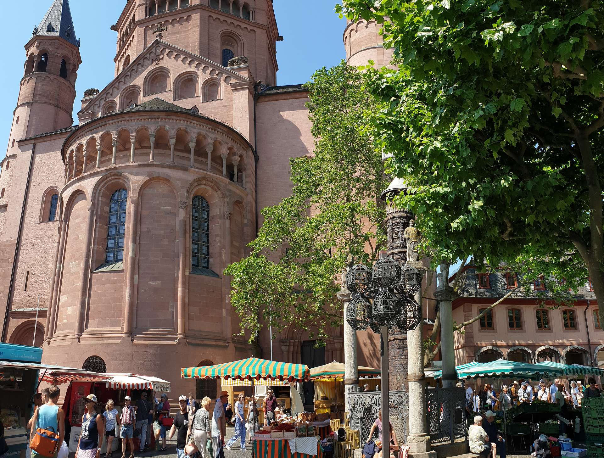Tag 8 - Freitag 9.6.23 - Heimfahrt, Halt in Mainz![]() Marktplatz und unten: Dom St. Martin (10. Jh.) (Bistum Mainz) |
