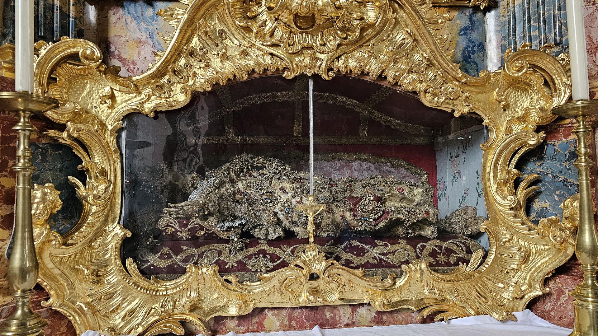 ![]() unten eine etwas gruselige Reliquie in der Pfarrkirche St.Nikolaus |
