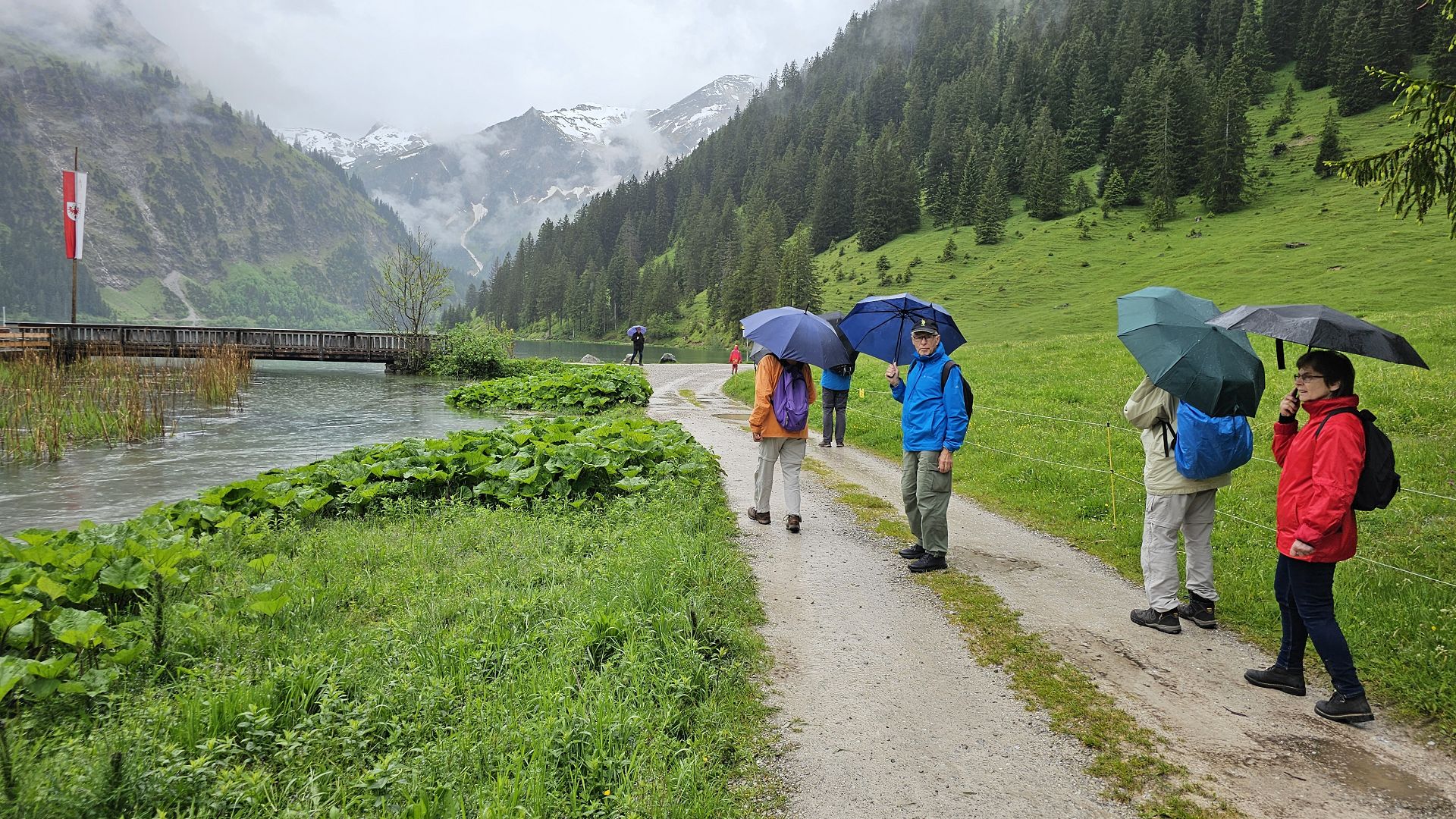 ![]() Tag 2 - Montag: mit dem Bus nach Tannheim, von dort weiter zum Vilsalpsee - leider bei leichtem Regen |