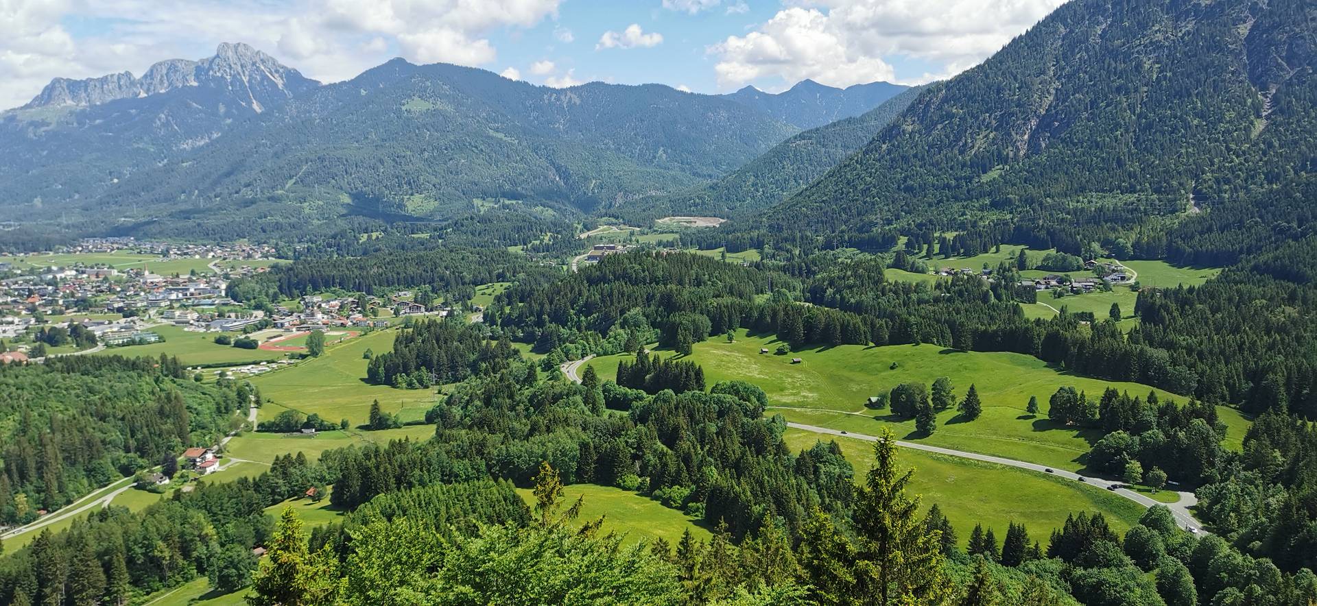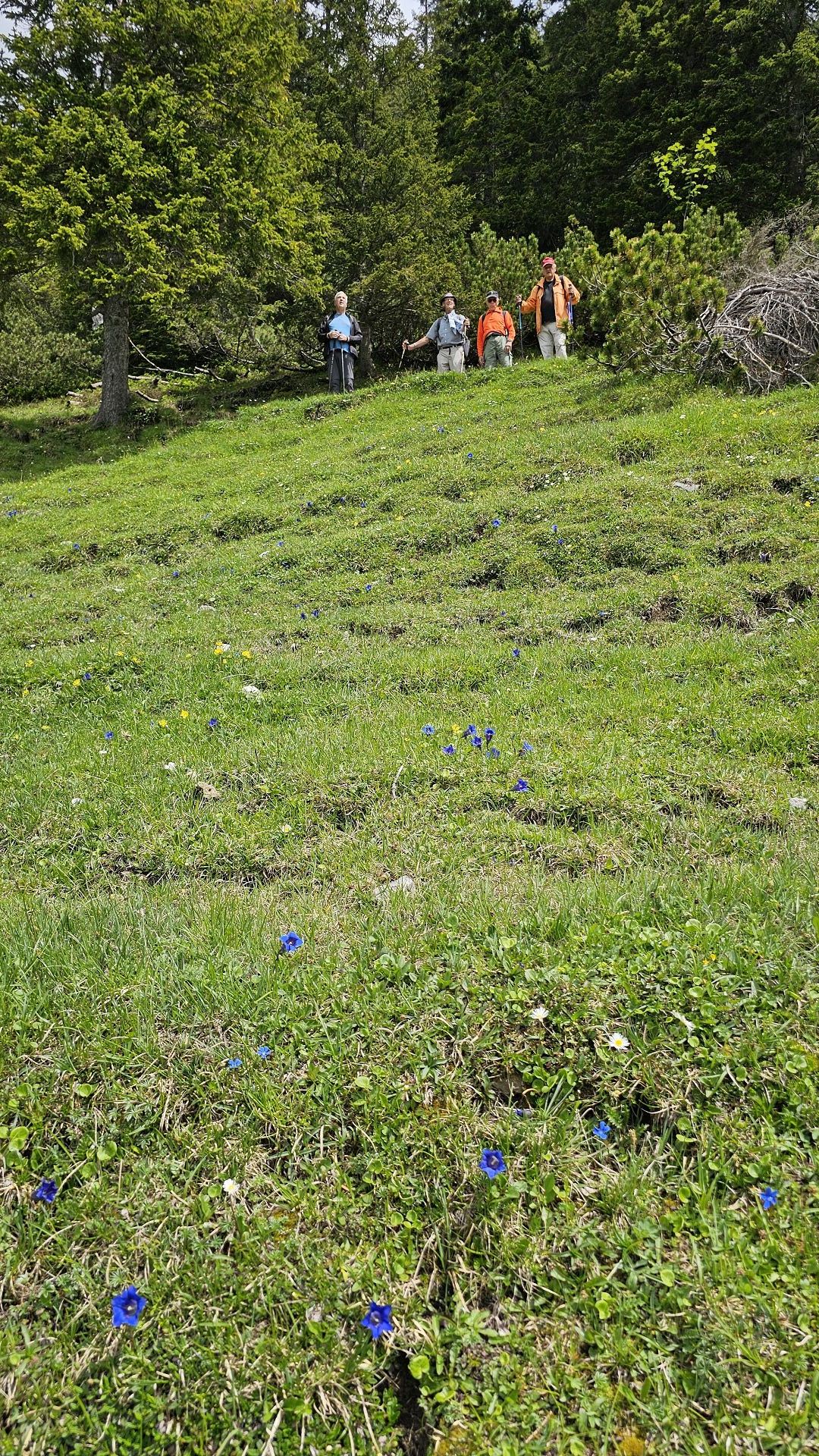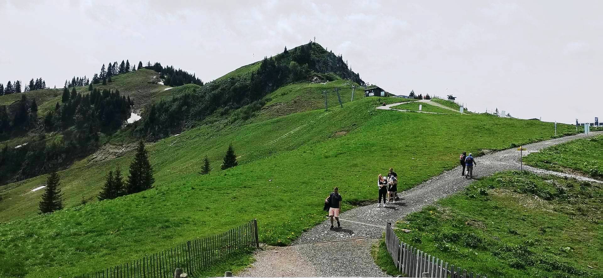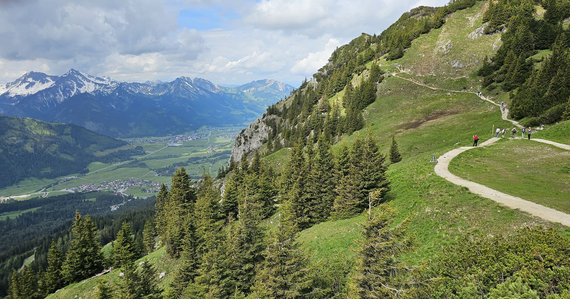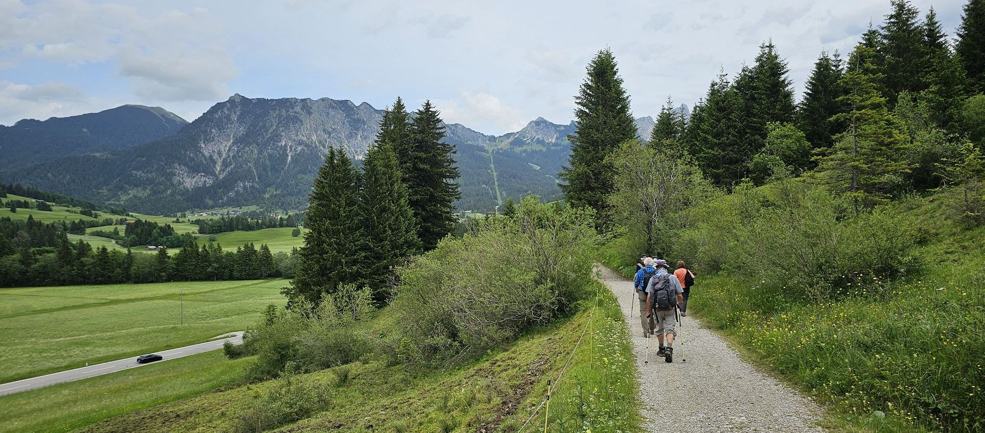 ![]() oben: am Heimweg zwischen Tannheim und Haldensee - links die Gondel zum Füssener Jöchle Tag 6, Samstag, 8.6.24: von Tannheim mit der Gondel aufs 9er-Köpfle |