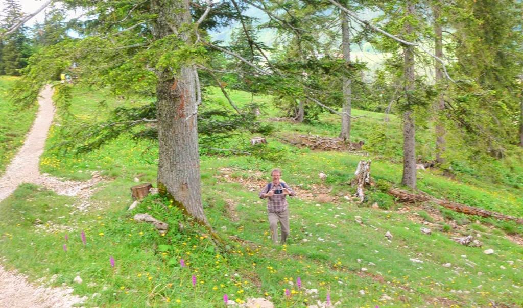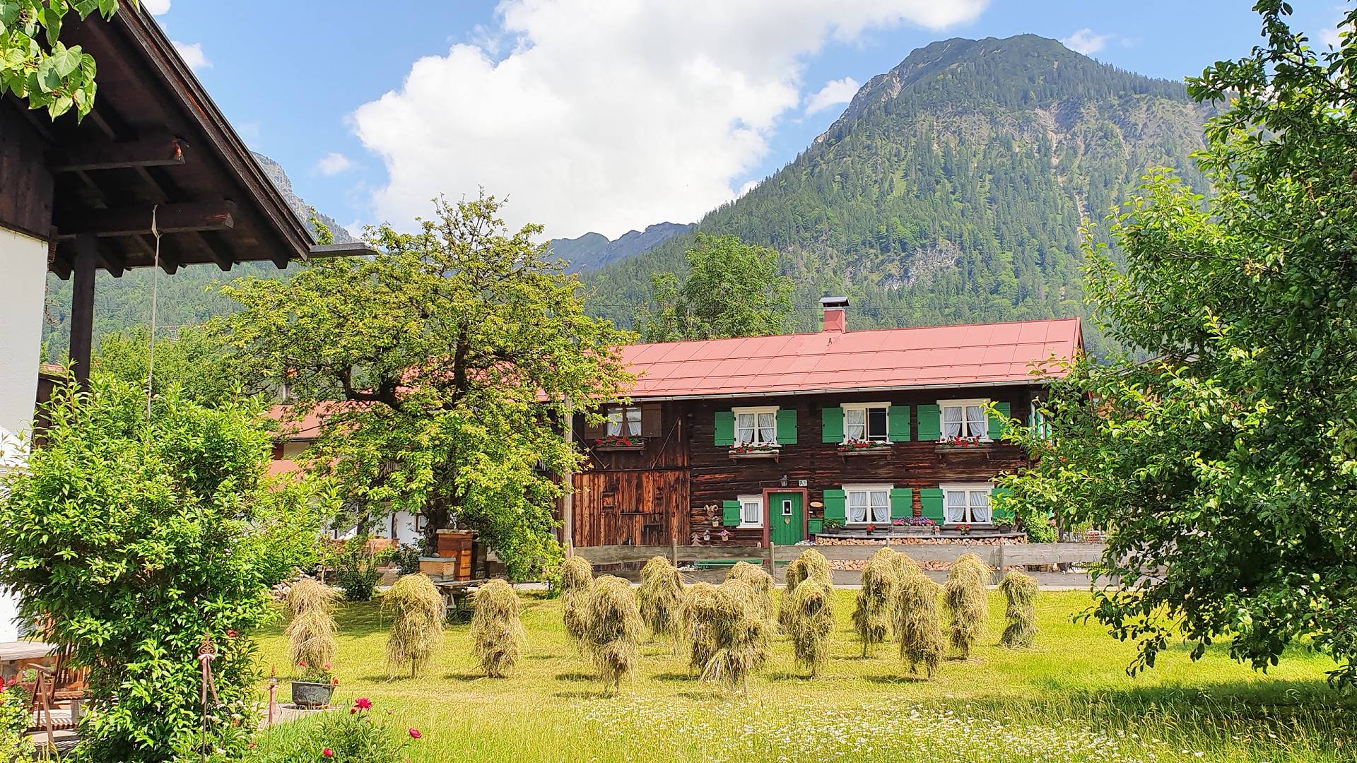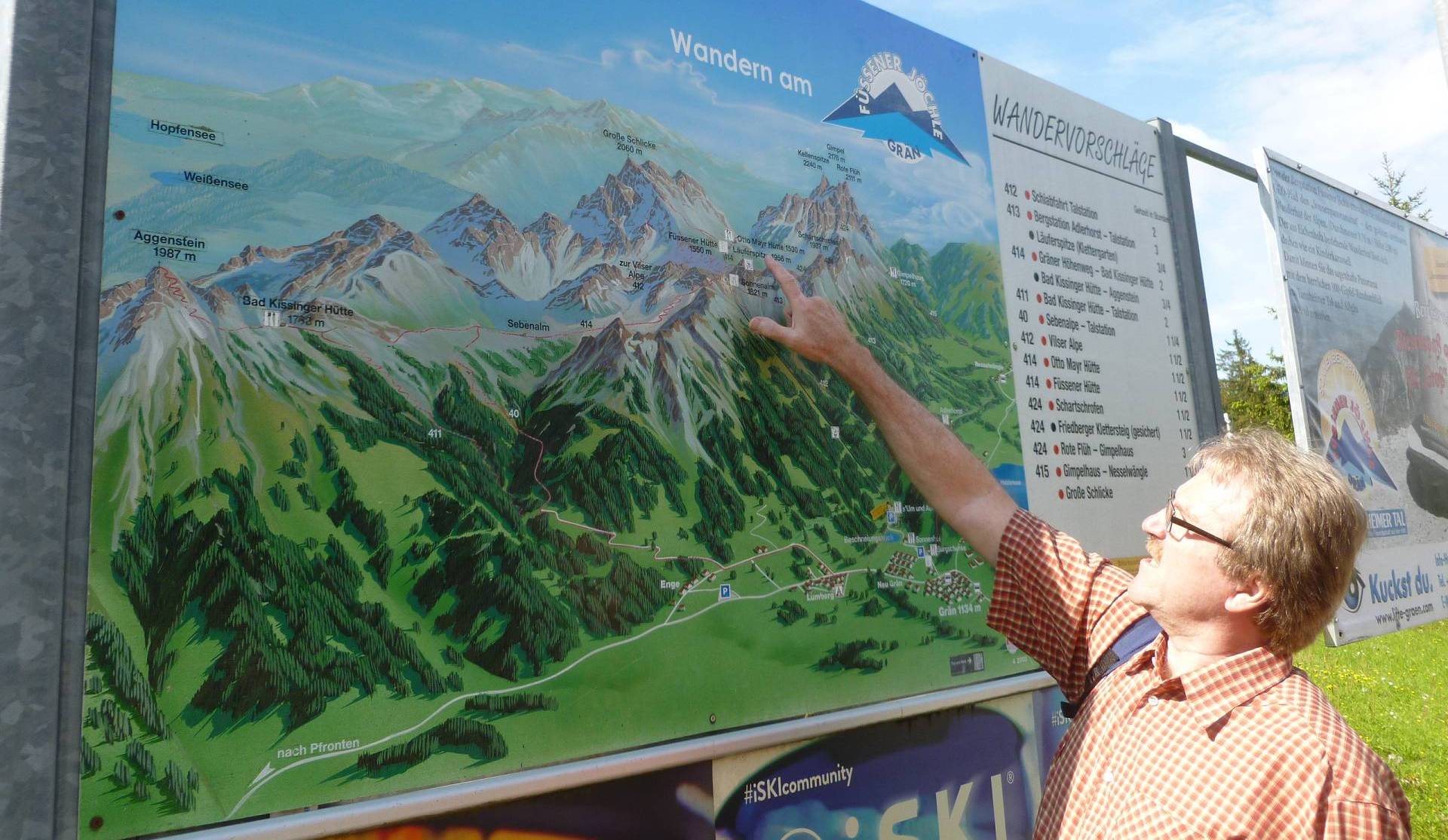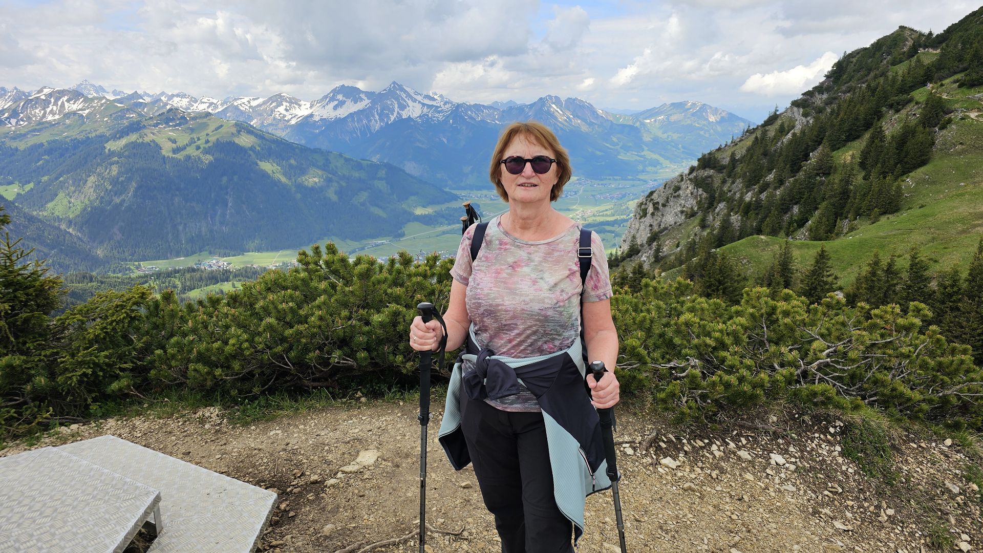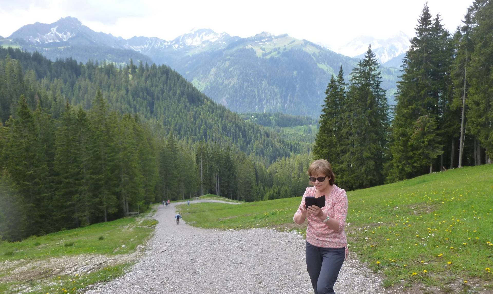 ![]() oben: am Heimweg zwischen Tannheim und Haldensee - links die Gondel zum Füssener Jöchle Tag 6, Samstag, 8.6.24: von Tannheim mit der Gondel aufs 9er-Köpfle |
