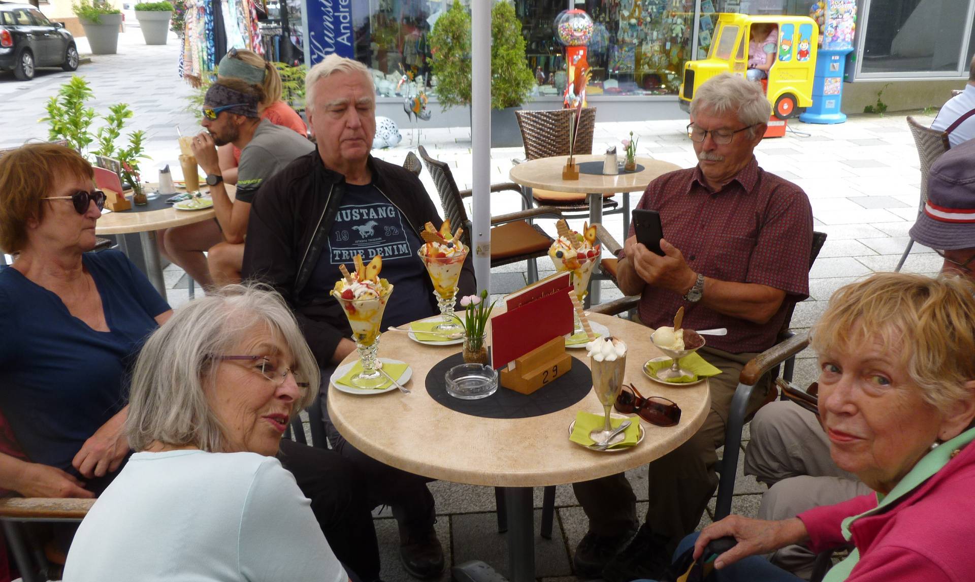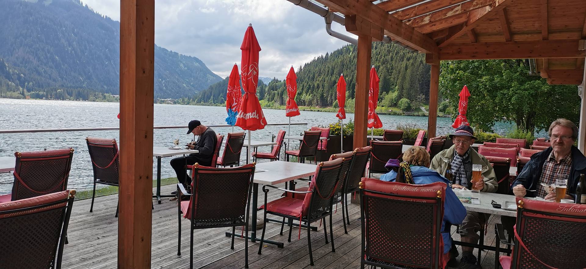![]() Im Platzl am See in Haller gibt es noch einen Eisbecher - und eine schöne Aussicht |