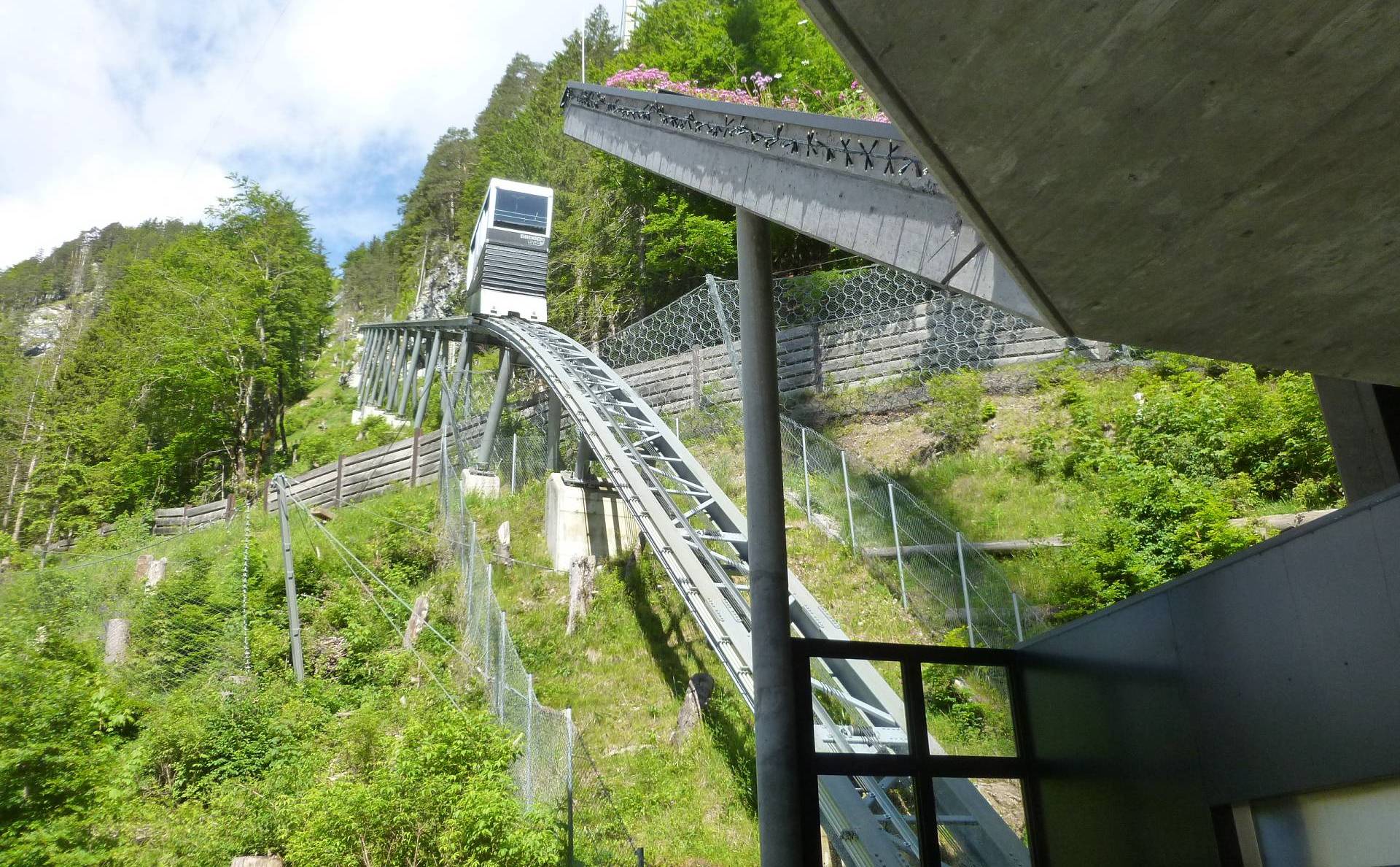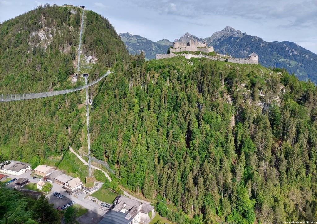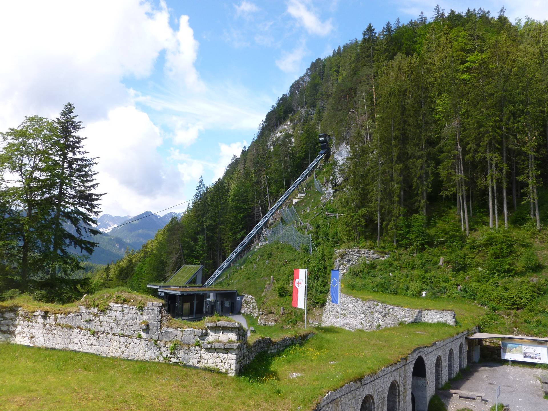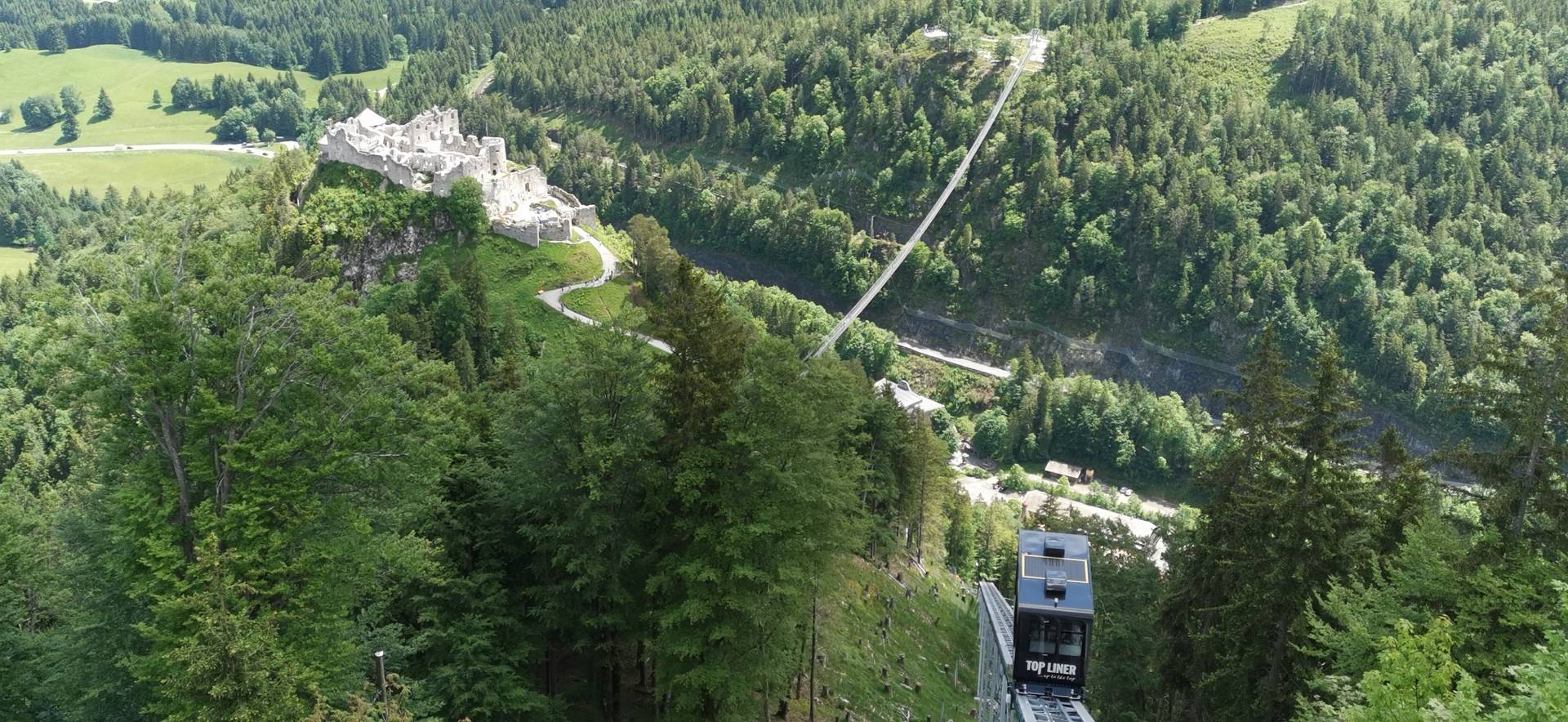 ![]() Top-Liner von der "Mittelstation" (= Ruine Ehrenberg und Hängeseilbrücke) zur Festung Schlosskopf |