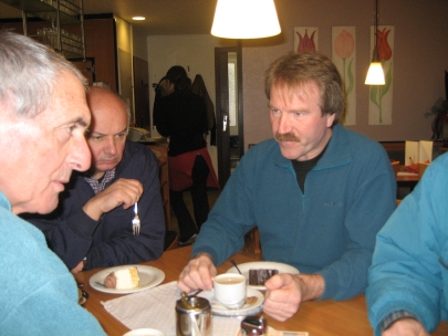 das nächste Café und schlürften einen heißen Kaffee und aßen auch gleich wieder