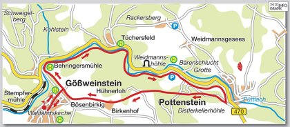 folgen. Wir starten vom Felsendorf Pottenstein, das auch mit dem VGN-Bus 389 gut