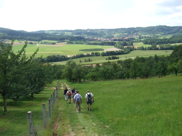 Waldrandes und auf schönen Wiesen weiter, bis wir wieder einen Feldweg