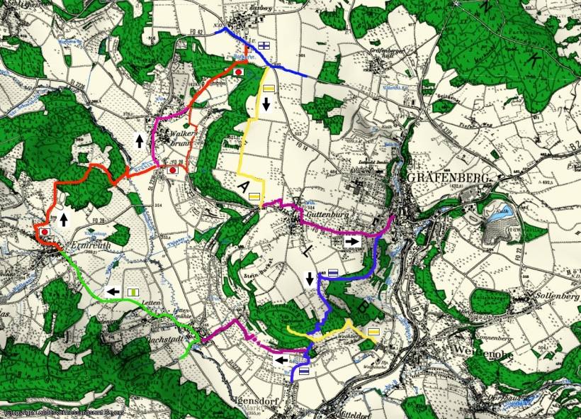 unterhalb von Guttenburg an eine Gabelung. Nach kurzer Orientierungsphase –