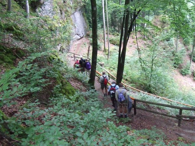 steile Abstieg führte direkt in die Versturzhöhle Riesenburg, die einen immer