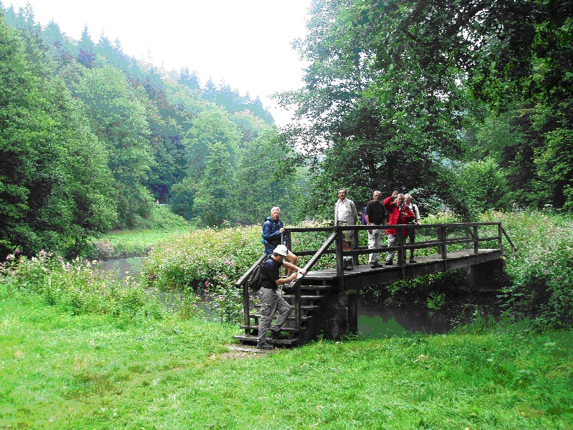 Die Wiesent überqueren wir auf einer kleinen Holzbrücke überquert und dann