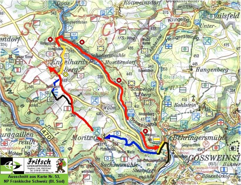Weg finden sich nahezu alle wichtigen Wanderwege durch die Fränkische Schweiz,