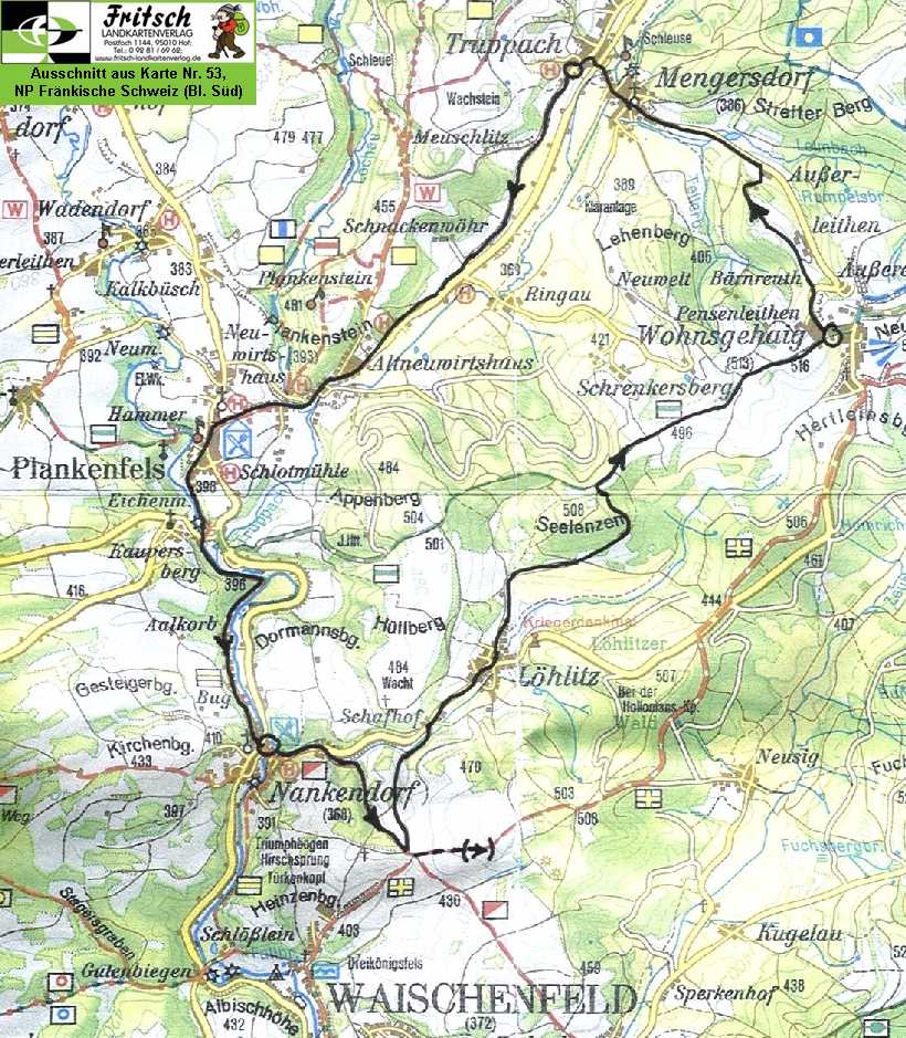 nach Plankenfels, sondern laufen von Truppach aus entlang dem Bach nach