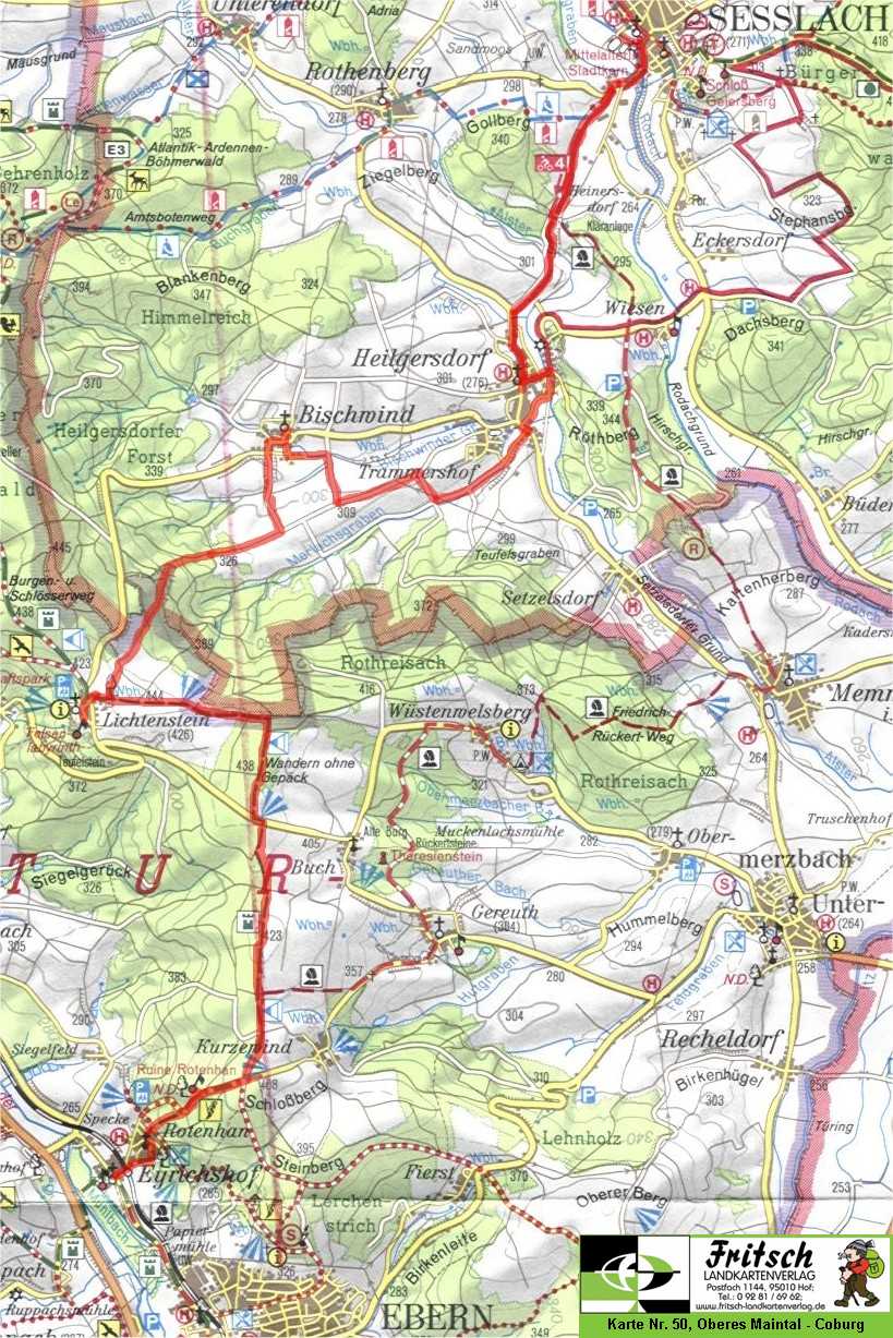 zusammen, also z.B. der Friedrich Rückertweg und der Burgenweg. Diesem schritten