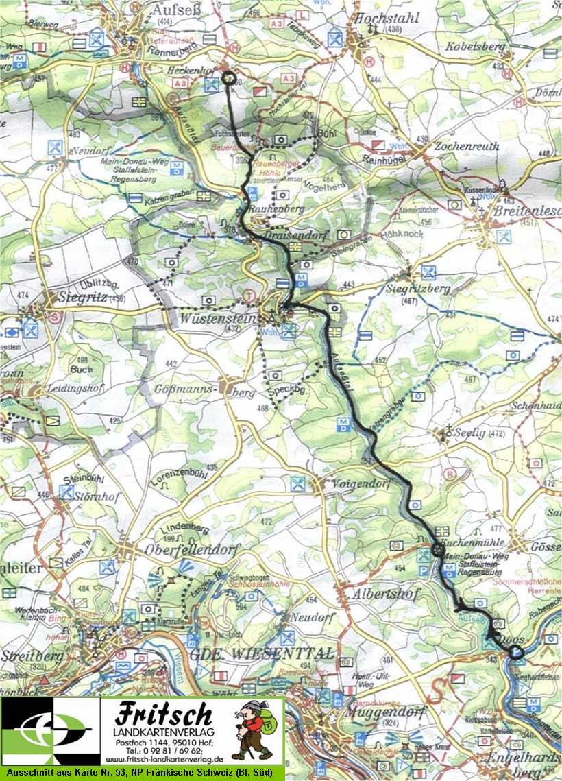 munter plätschernden Aufsess bis kurz vor Wüstenstein. Hier erregt ein kleiner