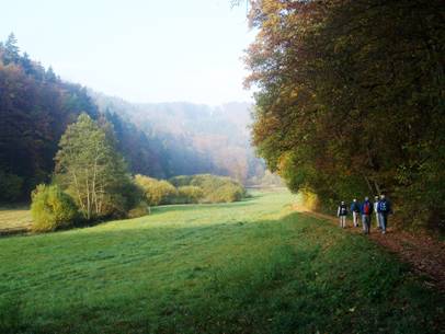 das einsame und schmale Aufsesstal zu wandern. Mittagsziel ist Heckenhof mit der