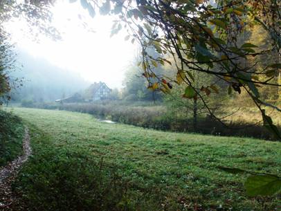 entlang des kleinen Bächleins laufen wir zuerst bis zur Kuchenmühle und haben