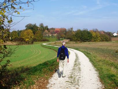 Draisendorf, laufen an der Mühle vorbei auf die Straße und folgen dieser bis ca.