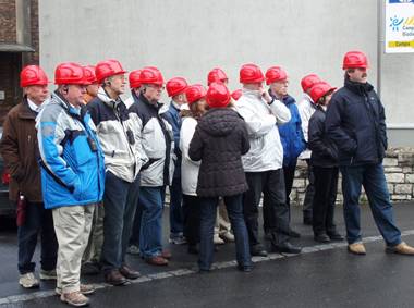 Kopfbedeckungen verabreichte. Als erstes wurden wir in einem kurzen Film mit der Firma Südzucker vertraut gemacht, erfuhren in einer kleinen Diskussion noch etwas über Subventionen und Kontingente. Dann liefen wir zur ersten Station und beobachteten, wie die vielen Fahrzeuge vollbeladen ankommen, registriert werden und dann im Nu entladen werden. Qualitätsanalyse und Dreckfeststellung muß auch sein. Danach beginnen die Rüben ihren Weg zum Zucker und wir folgten dementsprechend schrittweise mit. Wir sahen die Verschnitzelung und die Verflüssigung. Immer lag ein typischer Rübenduft in der Luft, selbst den schnupperten wir begierig auf. Dann durften wir auch nochmal unsere Fingerchen in einen Siruptopf stecken und nun schleckten wir tatsächlich schon mal den Zucker in spe. Dann die Trocknung in einem wohlgewärmten riesigen Raum mit verschiedenen Behältern und letztendlich standen wir vor einem Förderband aus dem dann der Zucker kristallartig herauskam. Eine hochinteressante Führung, kompetent und interessant vorgetragen von unserer Führerin. Zum Schluß bekam auch noch jeder eine Tüte mit Zucker geschenkt (Weitere Infos zur Zuckerfabrik: Klick mit linker Maustaste auf das Bild unten). Besten Dank aber auch an Ingrid, die uns damit schon eine große Freude bereitet hat. Nächstes Ziel