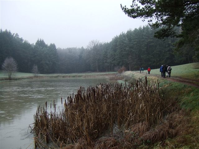 zugefrorenen Weihern führte uns der Weg in den Wald. Aufgrund der Feuchte war