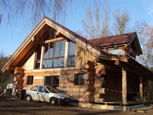 allem an dem wuchtigen Fachwerkhaus, das offenbar aus kanadischen Zedern