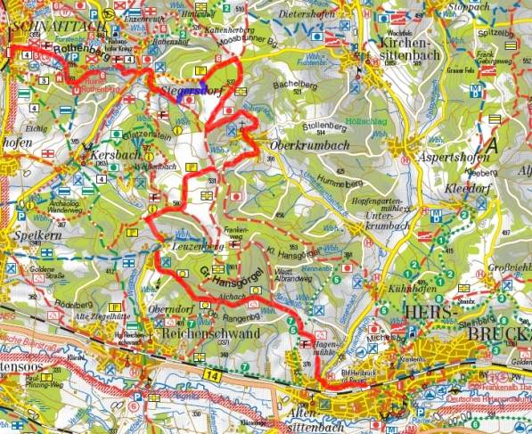 Osten treiben und erreichten so wieder den Weg nach Kirchensittenbach, den wir