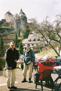 Hohenstein In Hohenstein angekommen stiefelten wir natürlich zuerst auf die Burg, aber unser Blick galt immer dem unter uns liegenden Gasthof. Tatsäthlich alles noch dunkel. Achim geriet langsam in Panik. Den schönen Blick von ganz oben konnten wir gar nicht mehr richtig genießen,da ja größeres Ungemach drohte. Dann sahen wir ein Auto einparken, ein älteres Ehepaar stieg aus und …..die Gastwirtschaft war offen. Gottseidank. Also wurden wir wieder ordentlich gefüttert und die Stimmung war wieder prächtig. Wir setzten unsere Wanderung dann fort und liefen auf dem roten Andreaskreuz ca. 300 m den Berg südlich hinab und schwenkten dann wieder in die Landschaft ein. Durch einen schönen mit Felsen gesäumten Wald ging es dann steil bergab in das Sittenbachtal bis nach Algersdorf. Hier erwarteten wir auch unsere schönen Märzenbecher. Der Einstieg ist etwas schwer zu finden, aber wir kannten uns ja aus und gingen hinter dem Bauernhof gegenüber der Künstlerwerkstatt über die kleine Brücke und dann hinter dem Bauernhof linker Hand leicht bergauf.Dort wurden wir auch schon von den schönen Frühlingsboten begrüßt und von der riesigen Menge auch überrascht. Wir erreichten nach ca 25 Minuten dann auch den Feldweg und