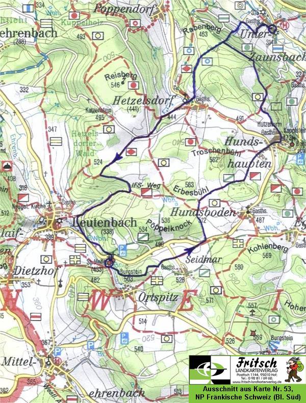 „blauer Kreis“ in Richtung Hetzelsdorf. Also steil bergan, aber schwer