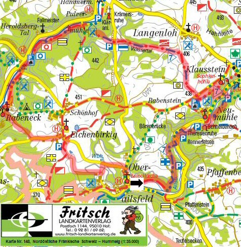 biegen wir gleich in Richtung Oberailsfeld ab. Am Ortsende folgen wir ein Stück Gelbkreuz und rotes Dreieck,