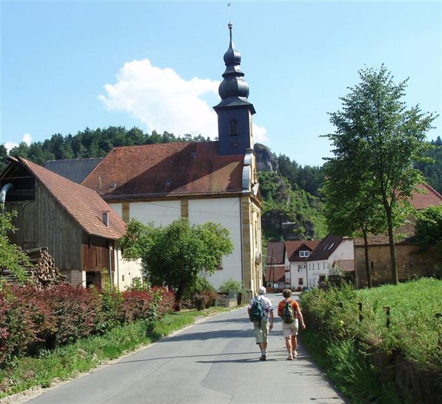 leicht bergan und erreichen bald die Ortschaft Eichenbirkig. Hier