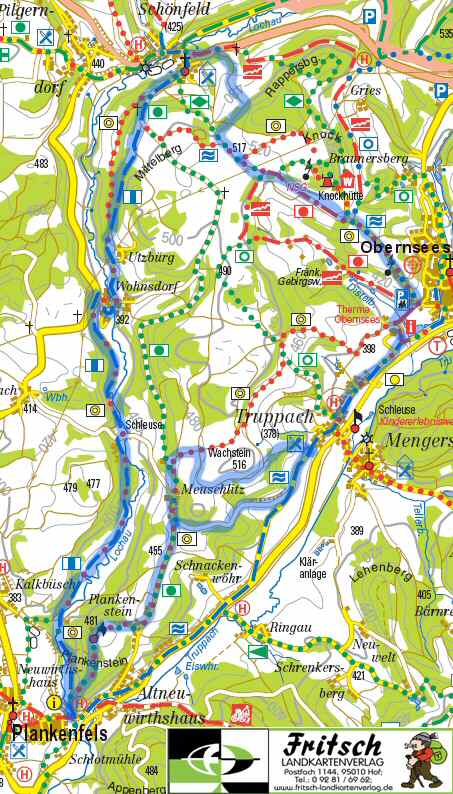 abfallende Tal der Truppach. Am Ortsanfang von Obernsees schwenkten wir in