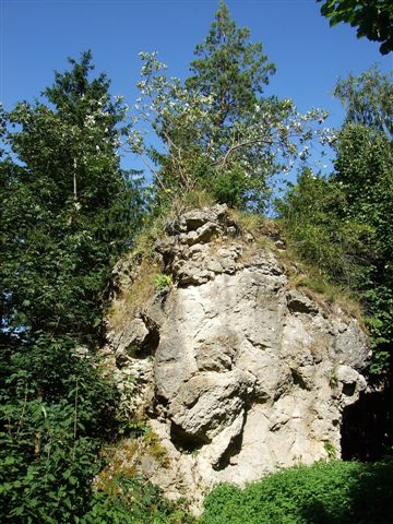 uns zunächst unmittelbar neben der Kirche auf einem schmalen Pfad in den