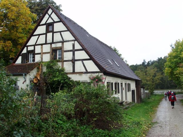 Weiher und des Bächleins, später unmittelbar entlang des Weihergebietes. Vor uns