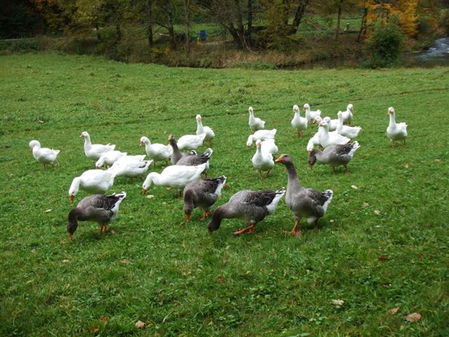 Gänsen, die friedlich vor sich hinschnatterten und uns einen stilgerechten
