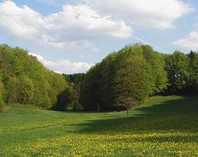 Zunächst führt der Rundwanderweg durch die Wiesengründe des Pitz- und