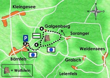 Forstweg auf der Markierung "Grünstrich" vorbei am Wolfstein zum Weiler