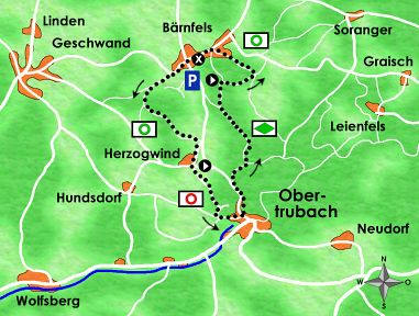 Pfaden und Forstwegen rund um Obertrubach. Auf einer Länge von 7,5 km sind zum