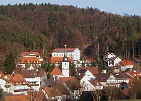 Blick ins Trubachtal) und Pestkapelle (Erbauung nach dem 30jährigen Krieg).