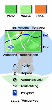 Wanderweg nach Süden ab, der vorbei am Kletterfels Wolfstein und dem