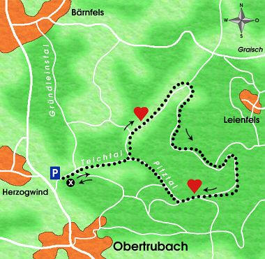 "Grüner Ring" bis nach Herzogenwind, von dort führt die Markierung "Rotring"