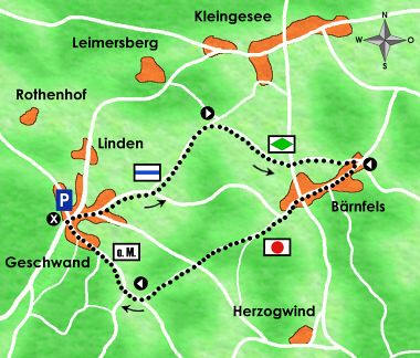 Bärnfels und wieder zurück nach Geschwand. In Bärnfels lohnt ein Blick von der