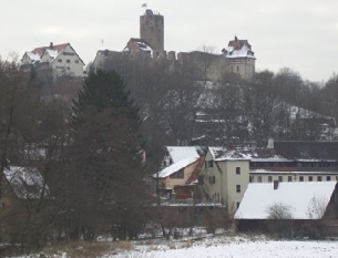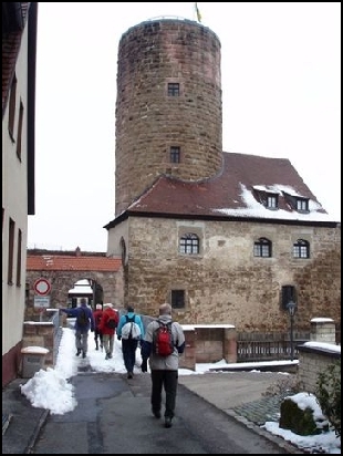 durch den Ort, dann im Wiesengrund bis zum kurzen Aufstieg zum Faberschloß.