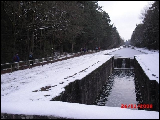 Dann liefen wir weiter durch winterlichen Wald, bis wir den alten Kanal