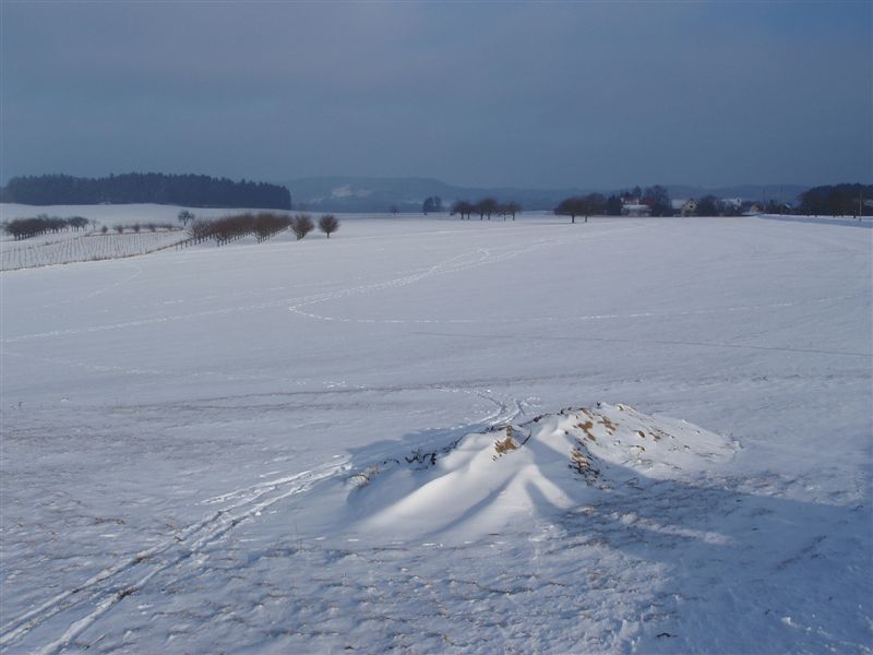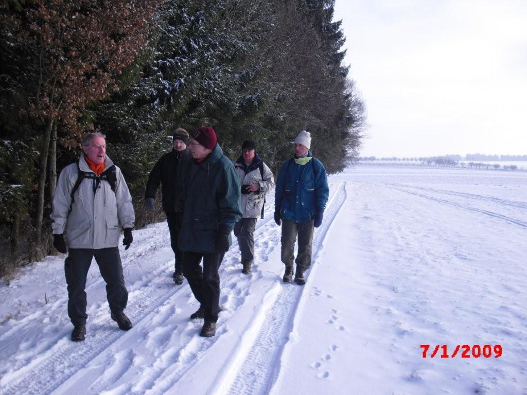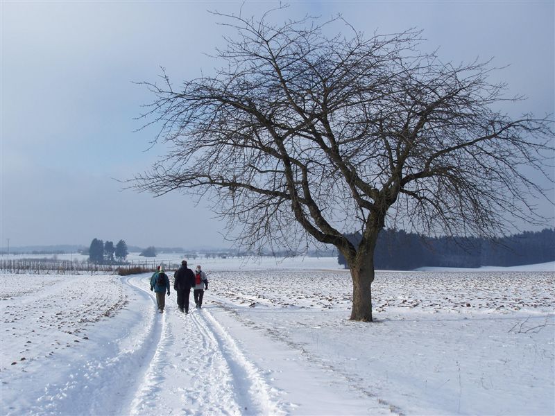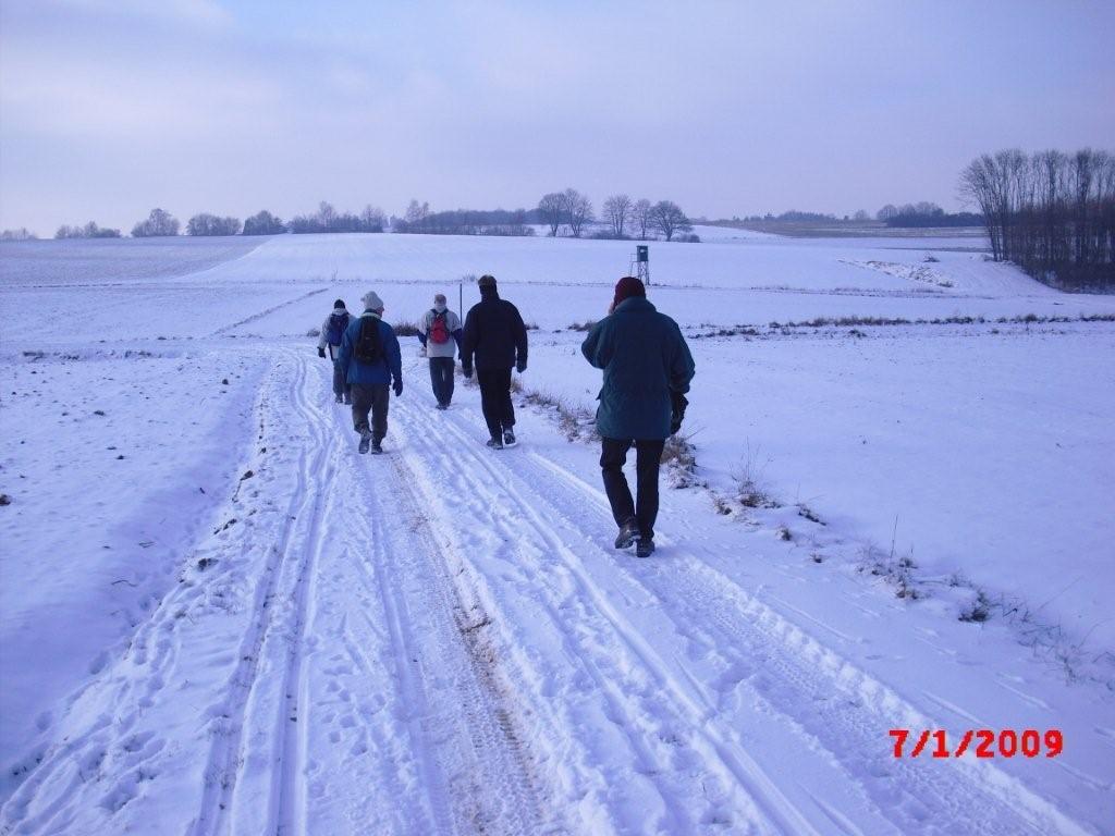 Anhöhe. Dann wechselten wir wieder auf den verschneiten Feldweg und folgten