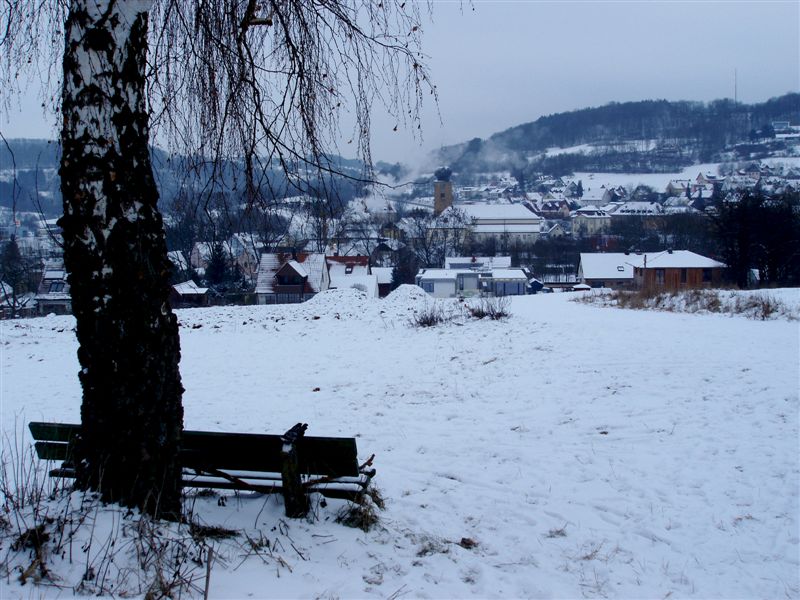 fränkischen Landschaft wunderbar verschneit vor uns sahen.